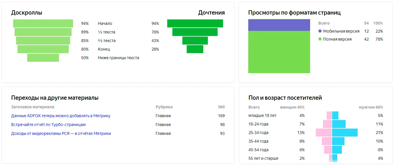В Метрике c 1 июля 2019 года существуют специальные отчеты для контентных проектов и медиа изданий.